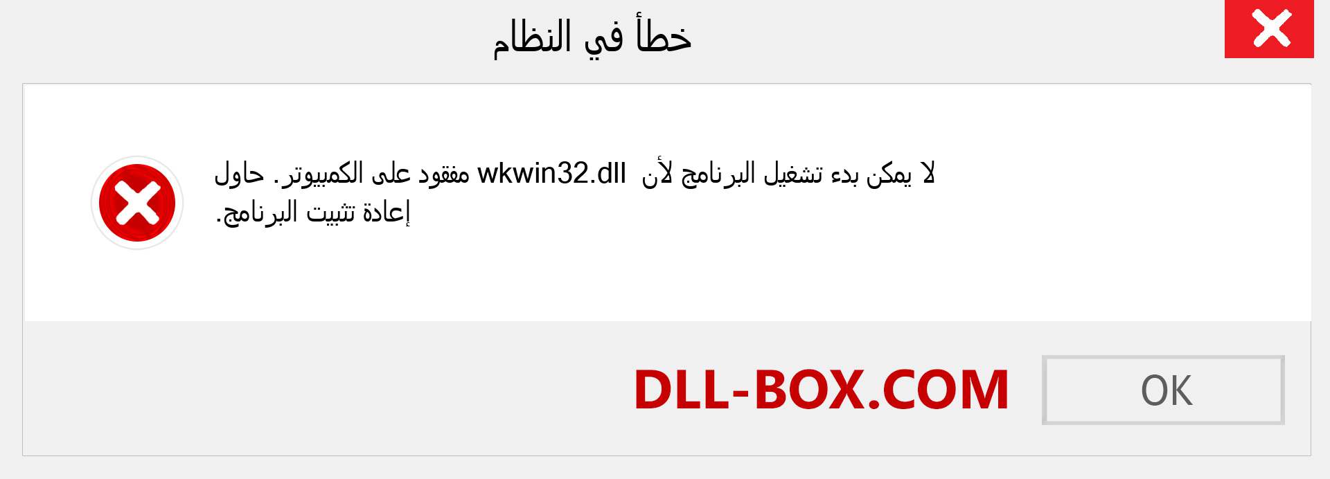 1. لا يمكن بدء تشغيل البرنامج لأن wkwin32.dll مفقود من جهاز الكمبيوتر الخاص بك. الرجاء إعادة تحميل البرنامج \ التطبيق لعلاج هذه المشكلة.